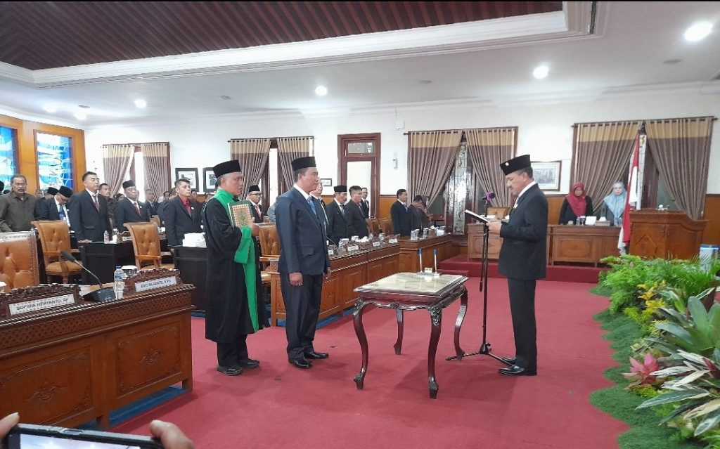 ”Keputusan Gubernur Jawa Timur Nomor 100.3.3.1 /1997 / kpps/11.2 / 2024 tentang Peresmian Pengangkatan Pengganti Antar Waktu Anggota Dewan Perwakilan Rakyat Kabupaten, memutuskan menetapkan kesatu memberhentikan dengan hormat Ahmad Baharudin, dan pengangkatan saudara Eko Wijayanto, Spd.Mpd., sebagai Pengganti Antar Waktu sisa masa jabatan tahun 2024- 2029. Terhitung mulai tanggal pengucapan sumpah janji, kedua Keputusan Gubernur ini berlaku sejak tanggal pengucapan sumpah janji,” paparnya.