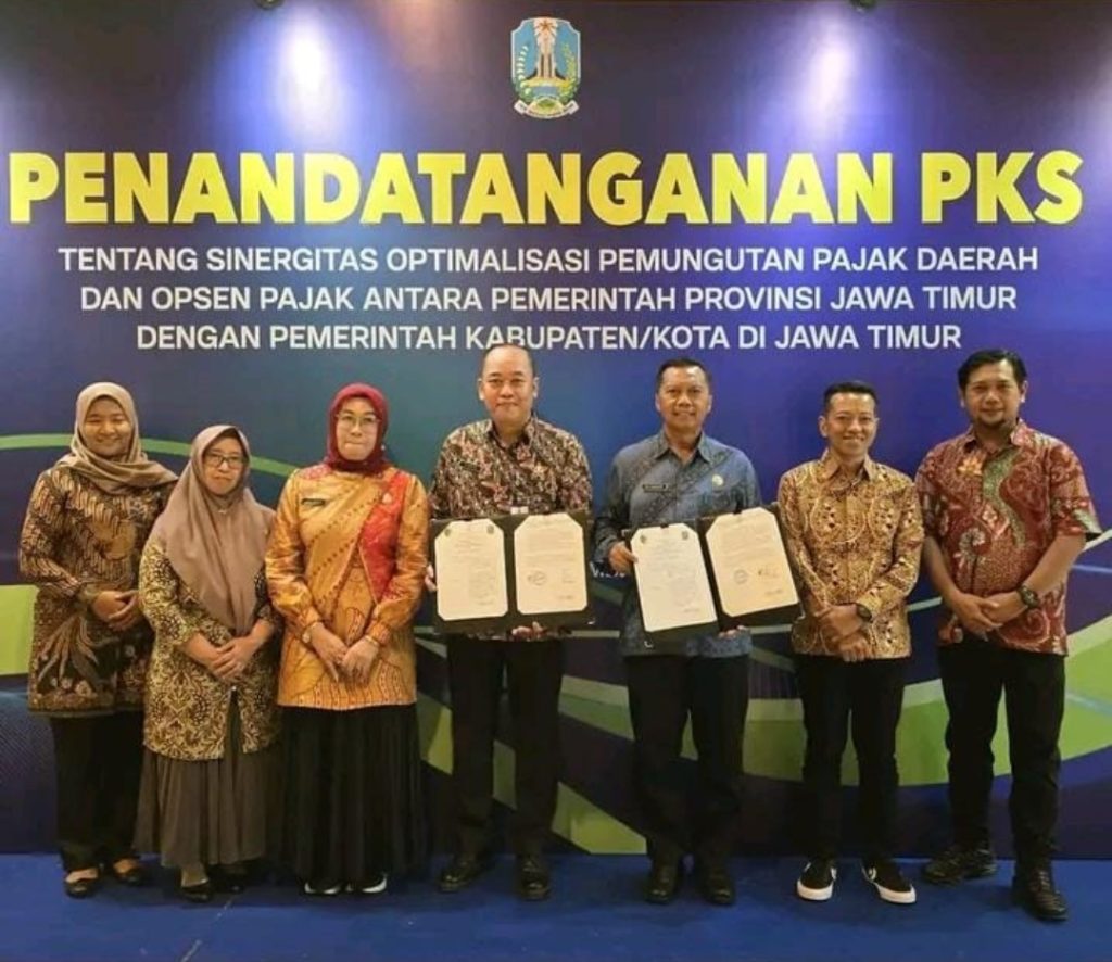 Tulungagung,- Sekretaris Daerah Kab. Tulungagung Drs. Tri Hariadi, M.Si., menghadiri Perjanjian Kerjasama Sinergi Pemungutan Pajak Daerah dan Ospen Pajak antara Pemerintah Provinsi Jawa Timur dengan Pemerintah se-Kabupaten Jatim bertempat di Hotel Bumi Surabaya City Resort pada Senin (2/12/2024).
