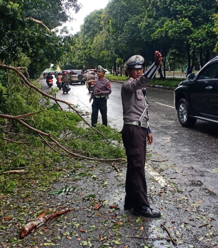 Dalam penanganannya, personel Polsek Pontianak Selatan bekerja sama dengan Tim SAR Polda Kalbar dan pihak Pemadam Kebakaran. Tim gabungan tersebut berupaya menyingkirkan pohon tumbang yang menghalangi jalan agar arus lalu lintas dapat kembali normal. Langkah ini juga dilakukan untuk memastikan keselamatan pengguna jalan, mengingat sisa batang dan ranting yang berserakan berpotensi membahayakan.