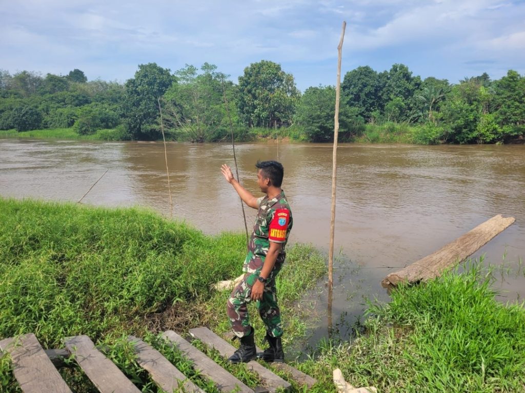 Bengkayang – Personil TNI dari Koramil 07/Jgb Serda Juniardi lakukan peninjauan langsung ke lokasi titik-titik daerah binaan yang dianggap rawan terjadinya banjir di Kec.Siding Kab.Bengkayang.