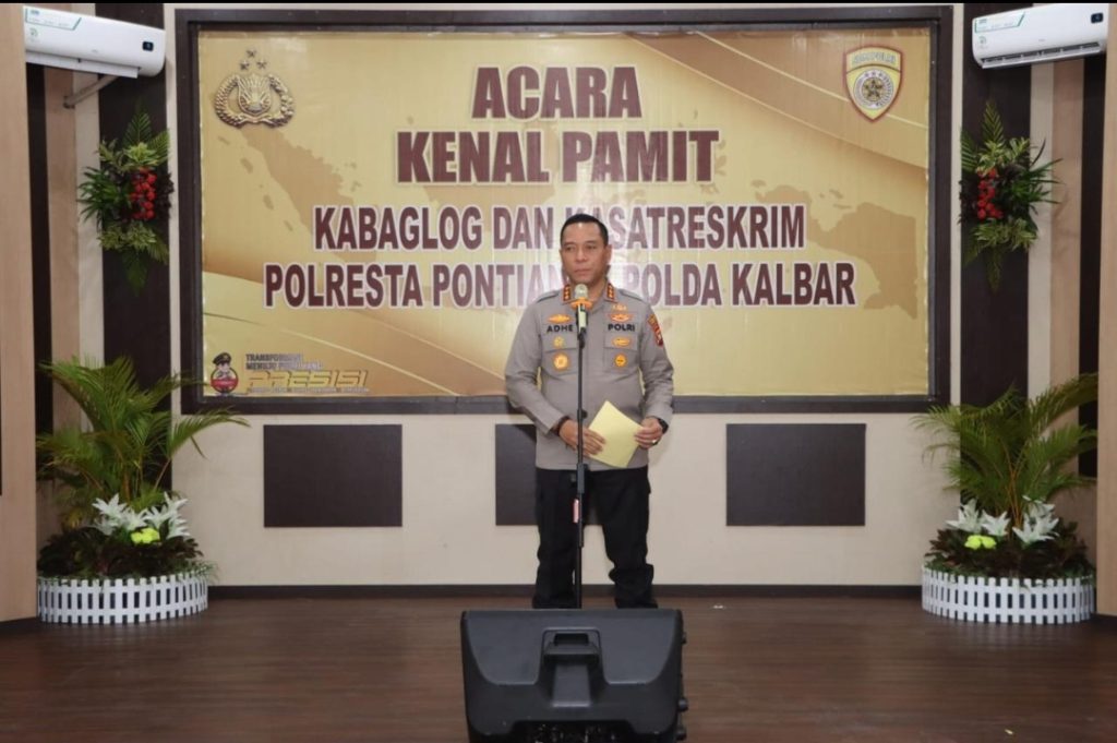 Kapolresta Pontianak, Kombes Pol Adhe Hariadi, S.I.K., M.H., memimpin upacara serah terima jabatan Kabaglog dan Kasat Reskrim Polresta Pontianak Polda Kalbar pada hari Sabtu (18/01/2025)
