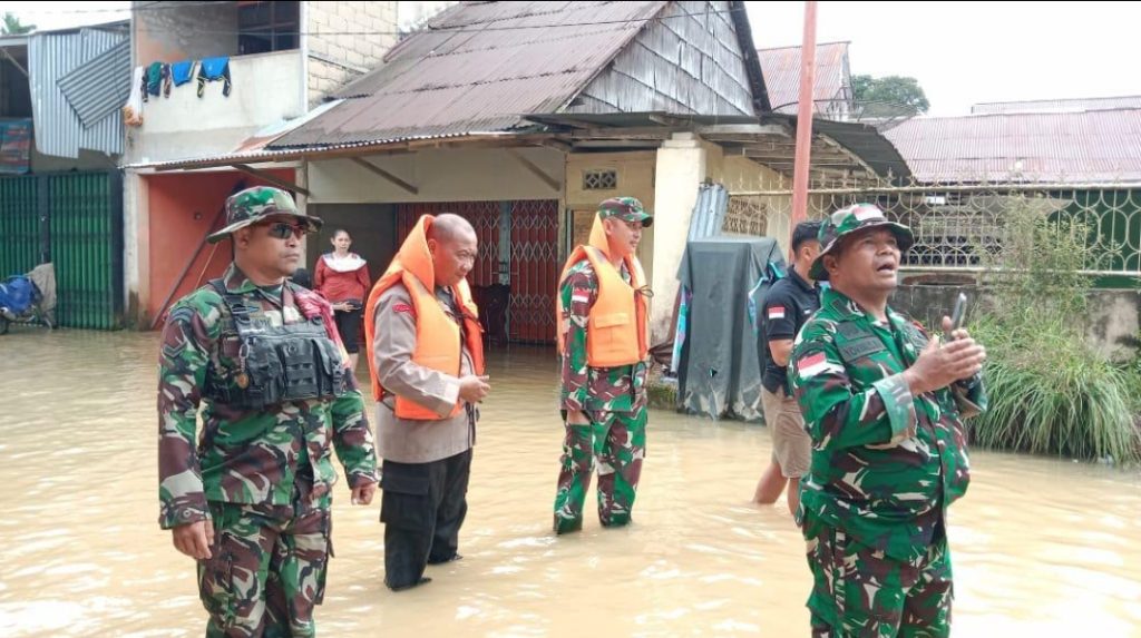 Bengkayang – Memasuki musim penghujan, Komandan Kodim 1209/Bky Letkol Inf Albertinus Mariano,S.E,terjun langsung ke lokasi yang terdampak banjir di