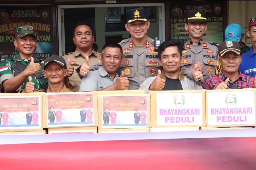 Kepolisian Resor (Polres) Sanggau menggelar kegiatan pemberian Bantuan Sosial (Bansos) bagi warga Kecamatan Sekayam yang terdampak bencana banjir. Bantuan ini diberikan secara khusus kepada para lansia, yatim piatu, dan masyarakat kurang mampu.