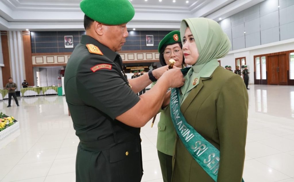Pangdam XII/Tpr Mayjen TNI Jamallulael mengucapkan selamat kepada Ketua Persit Kartika Chandra Kirana Daerah XII/Tpr, atas pengukuhannya sebagai Ibu Raksakarini Sri Sena bagi prajurit Kowad jajaran Kodam XII/Tpr