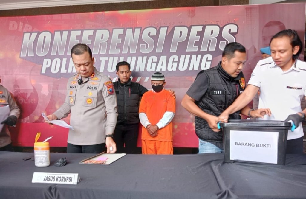 Kapolres Tulungagung AKBP Taat Mengatakan bahwa konferensi pers hari ini disampaikan perkembangan penanganan tindak pidana korupsi dalam penggunaan dana desa, alokasi dana desa, bagi hasil pajak dan retribusi daerah tahun anggaran 2020 sampai dengan 2021 dan bantuan keuangan kabupaten tahun anggaran tahun 2020 yang terjadi di Desa Kradinan, Kecamatan Pagerwojo Kabupaten Tulungagung. Penanganan kasus korupsi sudah cukup lama berlangsung, proses penyidikannya berlangsung dua setengah tahun.