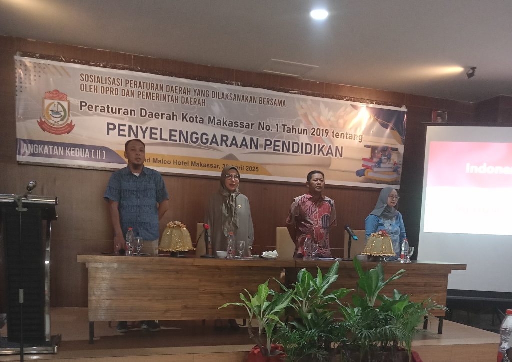 Sosialisasi Peraturan Daerah yang dilaksanakan bersama oleh DPRD dan Pemerintah daerah terkait peraturan daerah kota Makassar No. 1 Tahun 2019 tentang penyelenggaraan pendidikan angkatan kedua di Grand Hotel Makassar, jalan Pelita Raya VIll no. 1, kecamatan Rappocini, Makassar, Sulawesi Selatan (Sulsel), Rabu (30/04/2025).
