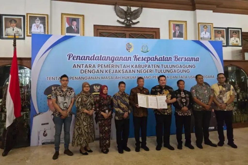 Tulungagung, – Bertempat di Pendopo Kongas Arum Kusumaning Bongso, Pemerintah Kabupaten Tulungagung resmi menandatangani kesepakatan bersama dengan Kejaksaan Negeri Tulungagung dalam penanganan masalah hukum bidang perdata dan tata usaha negara, Jumat (16/5/2025).