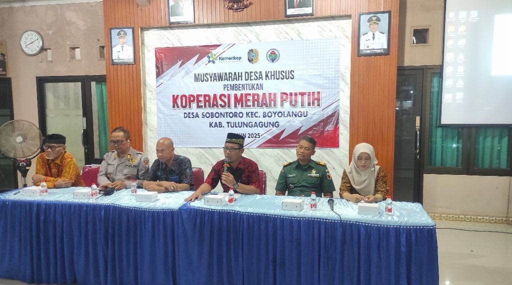 Tulungagung,- Dalam rangka menindaklanjuti Instruksi Presiden nomor 9 tahun 2025 tentang pembentukan Koperasi Merah Putih, Pemerintah Desa sobontoro, Kecamatan Boyolangu, Kabupaten Tulungagung, menggelar Musyawarah Desa Khusus