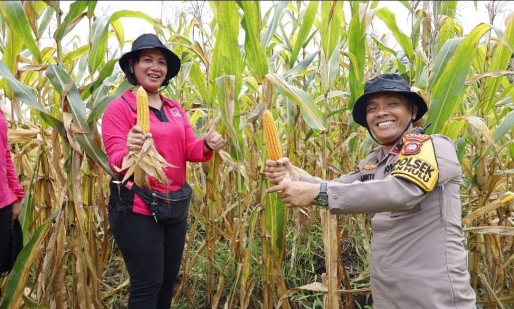 Kegiatan panen berlangsung dalam suasana yang kondusif dan terkendali, mencerminkan semangat kebersamaan antara aparat dan masyarakat dalam menjaga ketahanan pangan.