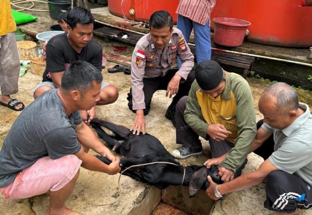 Sanggau, Polda Kalbar – Dalam rangka menyambut Hari Raya Idul Adha 1446 Hijriah, jajaran Polsek Sekayam, Polres Sanggau, melaksanakan kegiatan pengamanan penyembelihan hewan kurban di sejumlah masjid yang tersebar di wilayah Kecamatan Sekayam, Kabupaten Sanggau, Kalimantan Barat. Kegiatan ini berlangsung pada Sabtu pagi, 7 Juni 2025, mulai pukul 08.00 WIB.