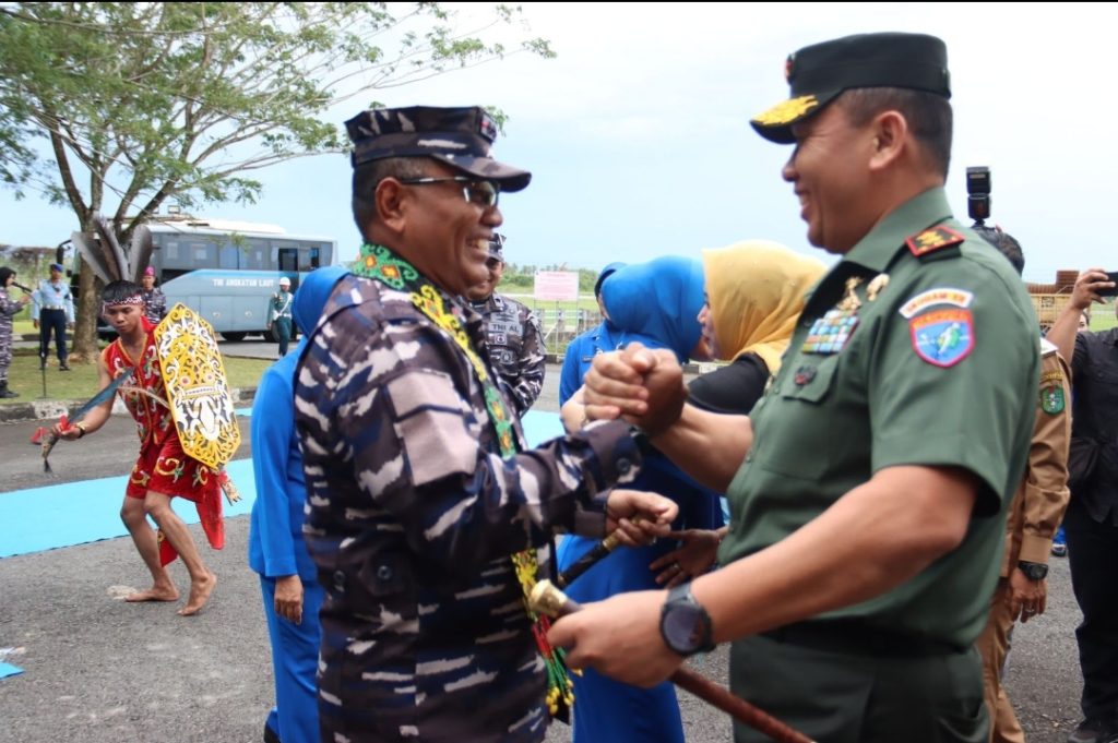 Kedatangan Pangkoarmada I didampingi Ketua DJA Armada I Ny. Juni Fauzi disambut dengan tarian penyambutan dan pengalungan syal oleh Danlantamal XII Pontianak Laksma TNI Avianto Rooswirawan, S.E., M.Si., M.Tr.Opsla., serta pemberian handbouquet oleh Ketua DJA Lantamal XII Ny. Sari Avianto Rooswirawan.