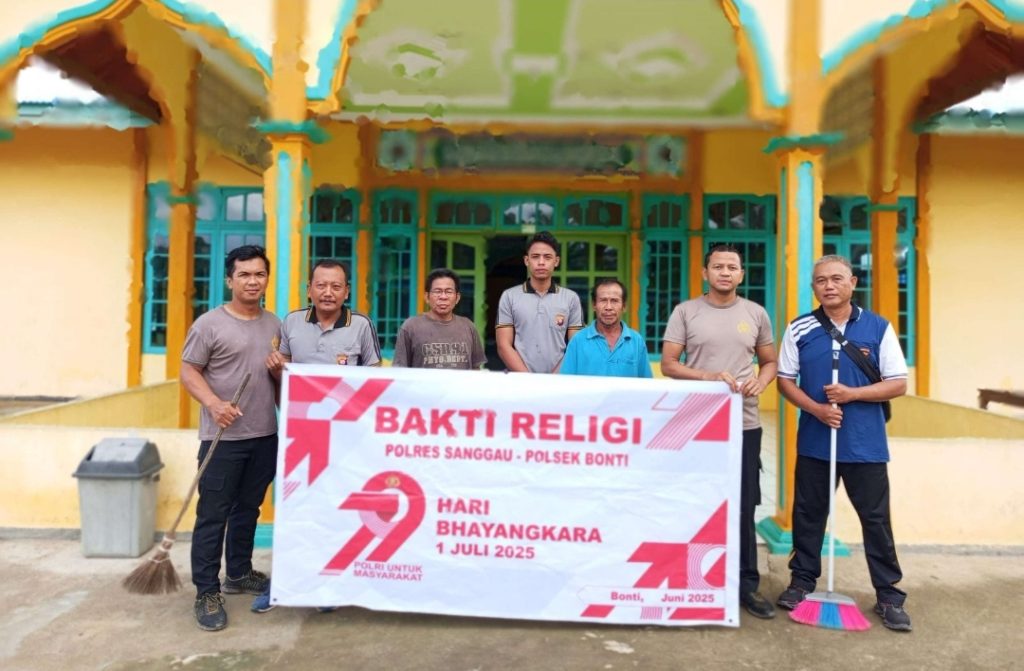 Sanggau, Polda Kalbar – Menyambut Hari Bhayangkara ke-79, Polsek Bonti melaksanakan kegiatan Bakti Religi sebagai bentuk pengabdian kepada masyarakat. Kegiatan yang digelar pada Jumat (20/6) pukul 08.30 WIB ini berlangsung di Masjid Besar Al-A’raaf, Jalan Kiai Martalaya No. 1, Dusun Bonti Selatan, Desa Bonti, Kecamatan Bonti, Kabupaten Sanggau.