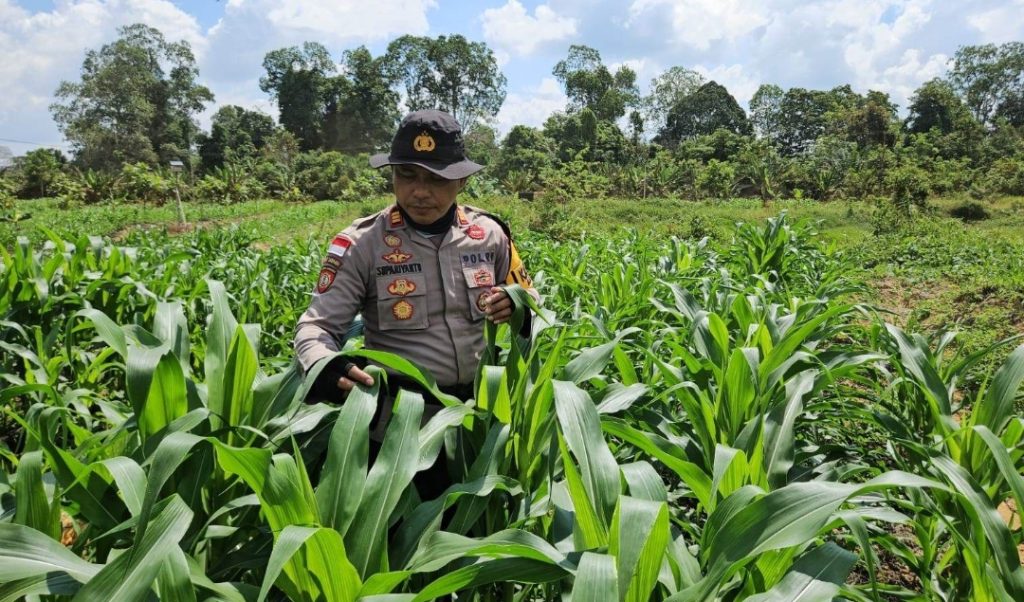 Sanggau, Polda Kalbar – Dalam rangka mendukung program ketahanan pangan nasional, Kepolisian Sektor (Polsek) Meliau melaksanakan pengecekan perkembangan tanaman jagung di lahan demplot seluas 1 hektare yang berada di wilayah Desa Sungai Mayam, Kecamatan Meliau, Kabupaten Sanggau. Kegiatan ini berlangsung pada Jumat (27/6/2025).
