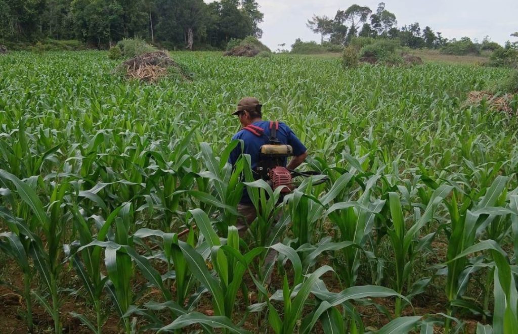 Dalam kegiatan tersebut, dilakukan beberapa langkah penting untuk menjaga kualitas pertumbuhan tanaman jagung. Di antaranya adalah pengecekan kondisi tanaman, penyiraman untuk mencegah kekeringan akibat cuaca panas, serta pengendalian gulma dengan menggunakan mesin potong rumput.