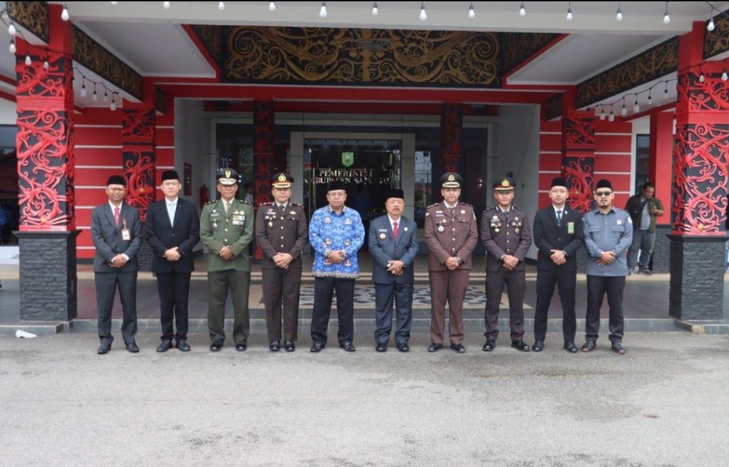 Upacara dipimpin langsung oleh Bupati Sanggau, Drs. Yohanes Ontot, M.Si., dan diikuti oleh jajaran Forkopimda, termasuk Wakapolres Sanggau Kompol Yafet Efraim Patabang, S.H., S.I.K., M.H., para staf ahli bupati, asisten Sekretaris Daerah, serta seluruh kepala perangkat daerah di lingkungan Pemerintah Kabupaten Sanggau.