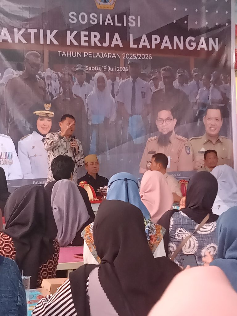 Sosialisasi Praktek Kerja Lapangan Tahun Pelajaran 2025/2026, yang dipimpin langsung oleh Kepala Sekolah Andi Umar Patta, S.Pd., M.Si. memberikan motivasi bagi orang tua siswa yang menghadiri pertemuan tersebut, Sabtu, 19 Juli 2025.