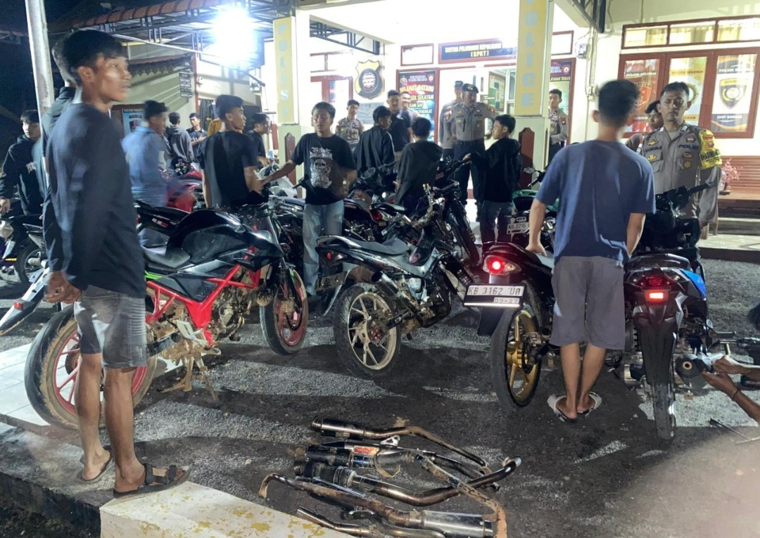 Polsek Sekayam Gelar Razia Malam di Perbatasan: 35 Kendaraan Knalpot Brong Ditindak, Penyelundupan Diantisipasi