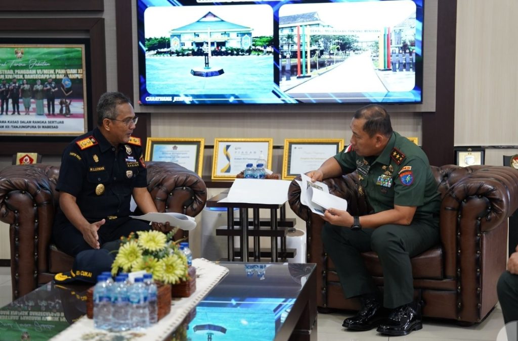 Kubu Raya – Pangdam XII/Tanjungpura Mayjen TNI Jamalluael, S.Sos., M.Si., menyambut hangat Kepala Kantor Wilayah DJBC Kalimantan Bagian Barat (Kalbagbar) Muhamad Lukman. Bertempat di Lobby Kehormatan, Makodam XII/Tpr, Rabu (28/8/2025).