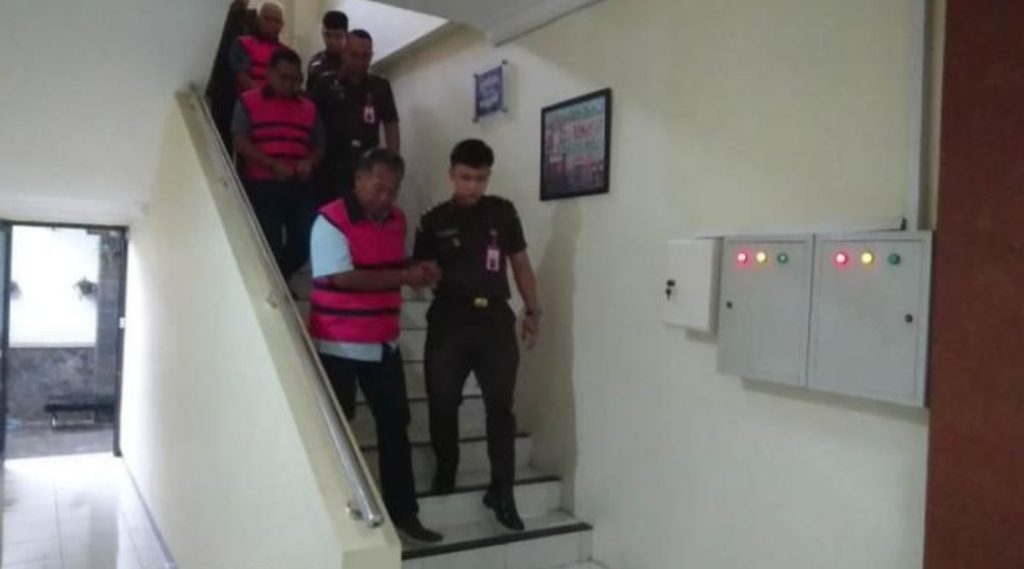 Empat tersangka yang ditahan itu terdiri dari dua pejabat RSUD dr Iskak Tulungagung dan dua perangkat Desa Tanggung, Kecamatan Campurdarat, Tulungagung. Mereka digelandang dengan mengenakan rompi tahanan menuju mobil tahanan setelah menjalani proses pemeriksaan dan pemberkasan di lantai dua kantor Kejari Tulungagung, Jalan Jayeng Kusumo.