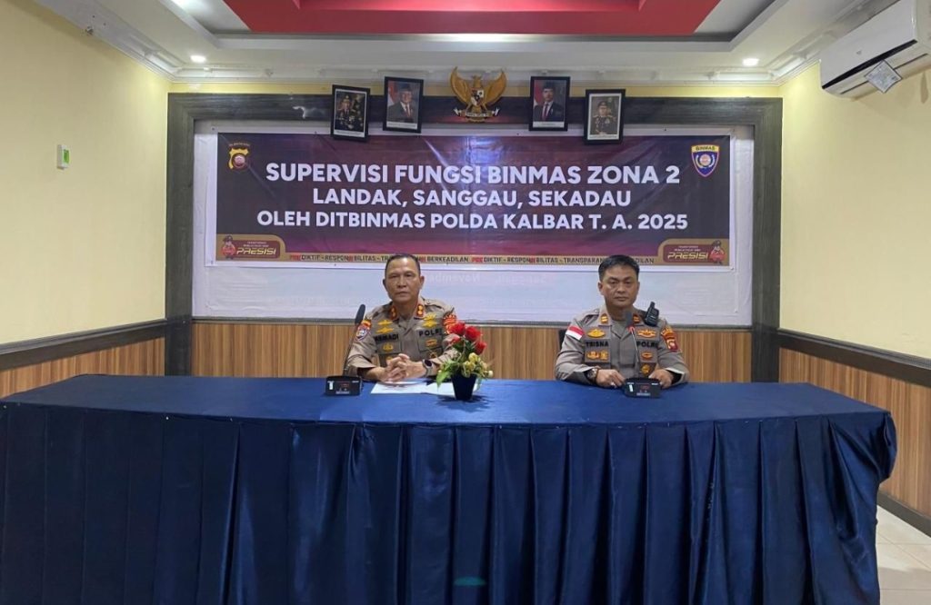 Sanggau, Polda Kalbar – Direktorat Binmas Polda Kalimantan Barat menggelar kegiatan Supervisi Fungsi Binmas Zona 2 yang melibatkan Polres Sanggau, Polres Landak, dan Polres Sekadau. Kegiatan berlangsung di Aula Wira Pratama Polres Sanggau pada Rabu malam, 10 September 2025.