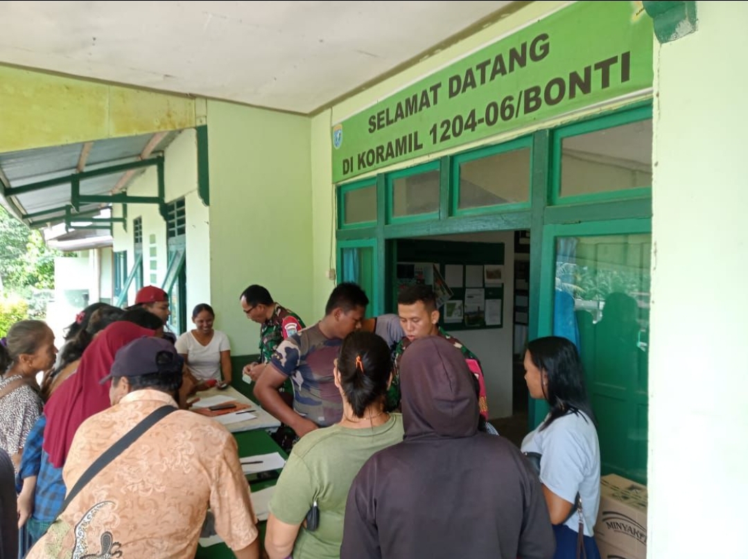 TNI DAN BULOG BERSINERGI GELAR PASAR MURAH DI KECAMATAN BONTI KABUPATEN SANGGAU