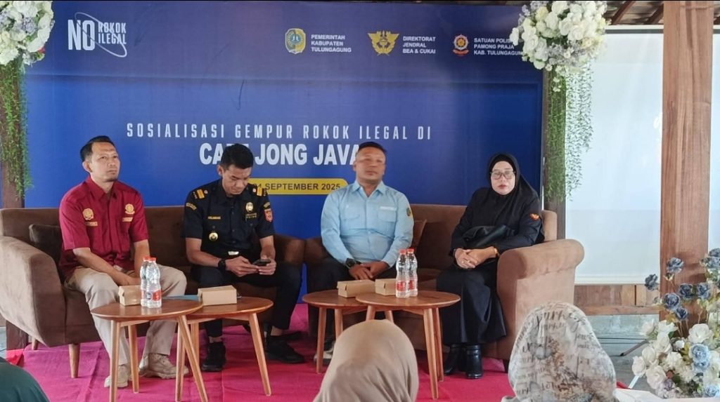 Tulungagung,-Kelurahan Kepatihan, dipimpin Lurah Rio Hendrawan Nusantara, S.E., bersama Bea Cukai dan Satpol PP Kabupaten Tulungagung menggelar sosialisasi Gempur Rokok Ilegal di Dong Java Kepatihan, Selasa (24/9/25). Kegiatan ini melibatkan BKTM, Linmas, RT/RW, Babinsa, Karang Taruna, puluhan warga, serta pemilik toko kelontong, menandai langkah nyata pemerintah dalam menumpas peredaran rokok ilegal yang merugikan negara dan masyarakat.