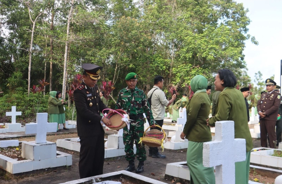 Ziarah dan Tabur Bunga di TMP, Wakapolres Sanggau Ikuti Peringatan HUT Ke-80 TNI