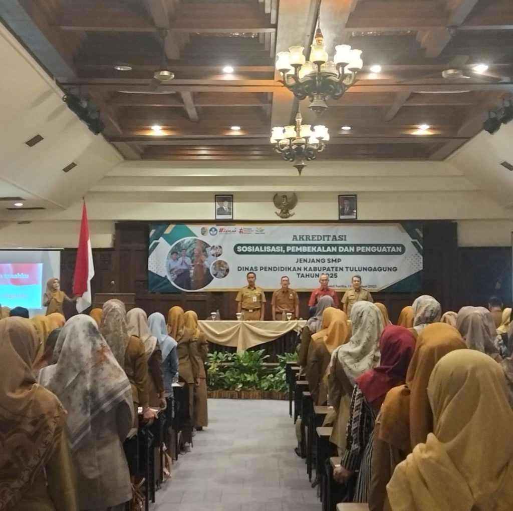 Tulungagung – Kegiatan Sosialisasi, Pembekalan, dan Penguatan Akreditasi Jenjang SMP Tahun 2025 resmi digelar pada Selasa, 14 Oktober 2025, bertempat di Hotel Narita, Tulungagung. Acara ini menjadi momentum penting bagi seluruh satuan pendidikan tingkat SMP untuk memperkuat pemahaman dan kesiapan menghadapi proses akreditasi tahun depan.