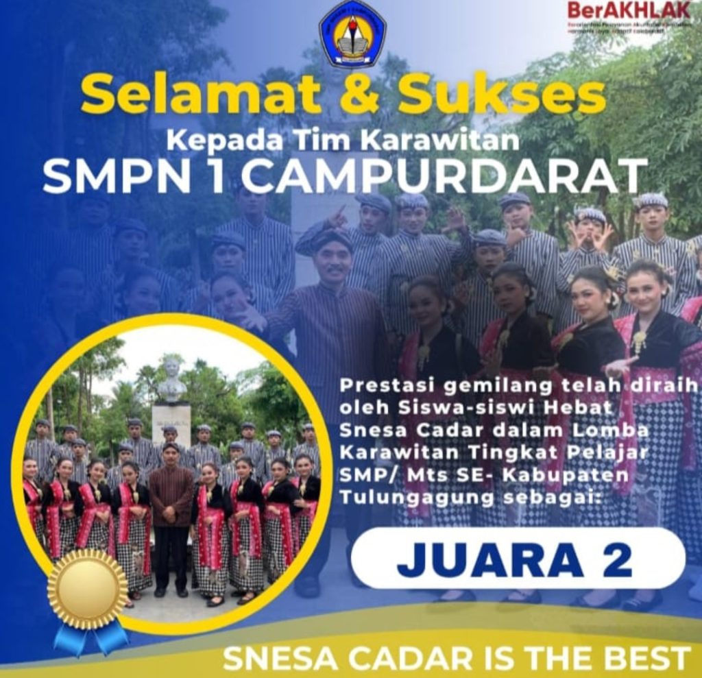 TULUNGAGUNG,-Siswa-siswi SMPN 1 Campurdarat kembali menorehkan prestasi gemilang yang patut diapresiasi di bidang seni tradisional. Tim karawitan sekolah yang dikenal dengan nama SNESA CADAR berhasil meraih Juara 2 dalam Lomba Karawitan Tingkat Pelajar SMP/MTs se-Kabupaten Tulungagung. Informasi mengenai prestasi ini diumumkan pada Kamis, 16 Oktober 2025, setelah lomba yang berlangsung selama tiga hari, dimulai pada Selasa, 14 Oktober 2025, dan diselenggarakan oleh Dinas Pendidikan Kabupaten Tulungagung melalui UPT Taman Bina Bakat dan Kompetensi Siswa (TB2KS).
