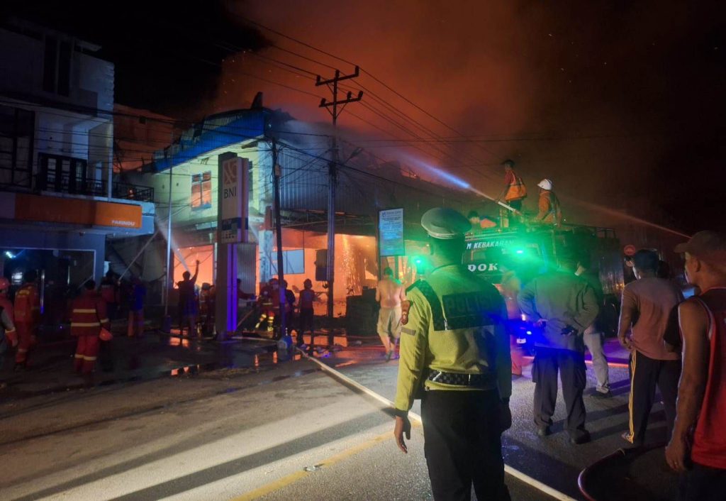 Baru pada pukul 02.30 WIB, api berhasil dipadamkan sepenuhnya. Meski tidak menimbulkan korban jiwa, kebakaran tersebut menghanguskan total tujuh unit ruko yang terdiri dari berbagai usaha seperti toko air mineral, bengkel motor, kafe, koperasi, serta dealer kendaraan bermotor.