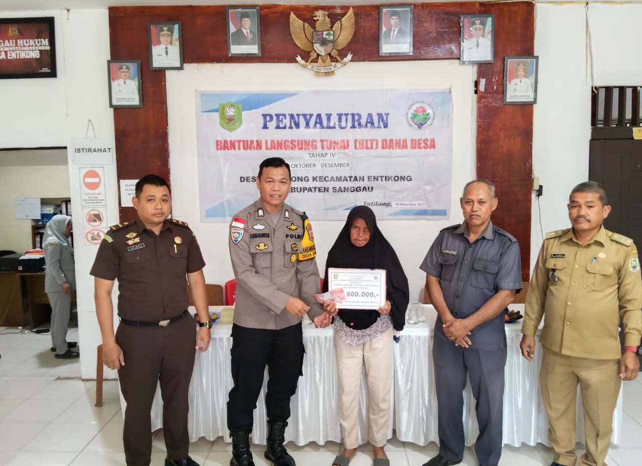 Sanggau, Polda Kalbar – Pemerintah Desa Entikong menyalurkan Bantuan Langsung Tunai (BLT) Dana Desa tahap IV untuk periode Oktober hingga Desember 2025 kepada warga penerima manfaat pada Senin, 8 Desember 2025. Kegiatan berlangsung di Kantor Desa Entikong, Jalan Lintas Malindo No. 09, Dusun Entikong Benuan, Kecamatan Entikong, Kabupaten Sanggau, mulai pukul 09.00 WIB hingga selesai.