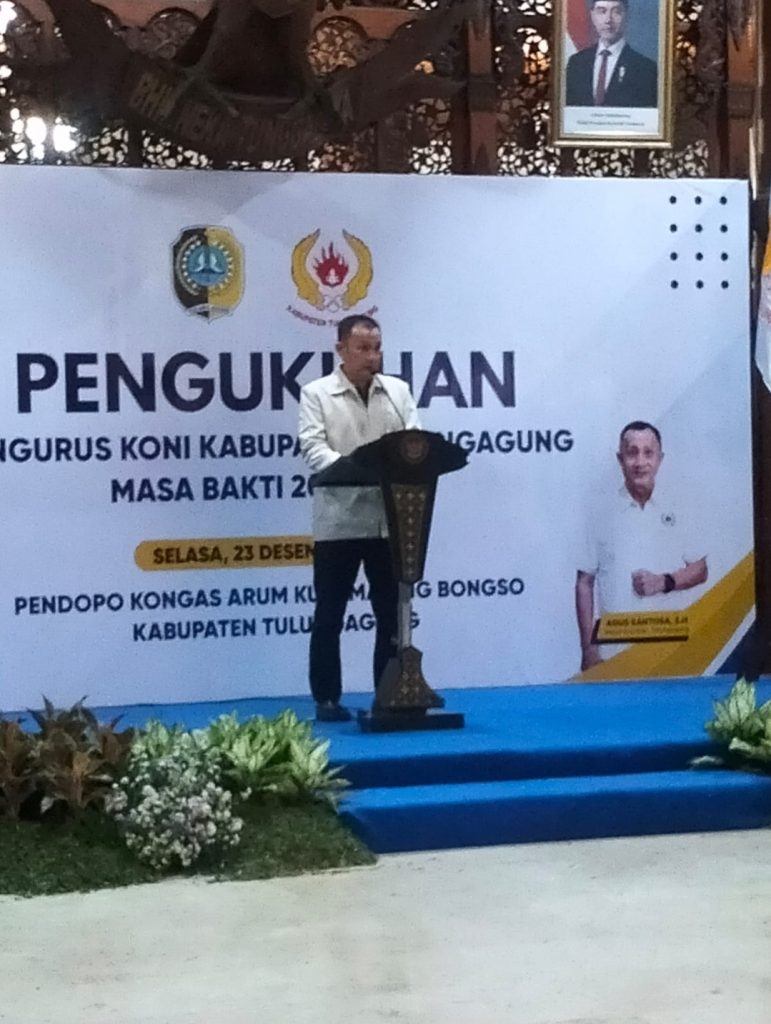 TULUNGAGUNG,-Pengukuhan Ketua dan Pengurus Komite Olahraga Nasional Indonesia (KONI) Kabupaten Tulungagung masa bakti 2025–2029 yang digelar Selasa malam (23/12/2025) di Pendopo Kongas Arum Kusumaning Bongso menjadi momentum penting penegasan arah pembinaan olahraga prestasi di Kabupaten Tulungagung.