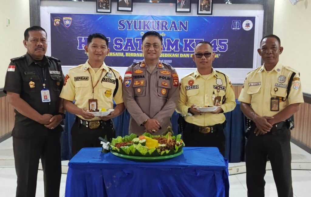 Dalam sambutannya, Iptu Trisna Maulidi menyampaikan ucapan selamat HUT ke-45 kepada seluruh Satpam. Ia menekankan bahwa peran Satpam saat ini semakin strategis sebagai bagian dari sistem keamanan nasional yang mendukung tugas Polri.
