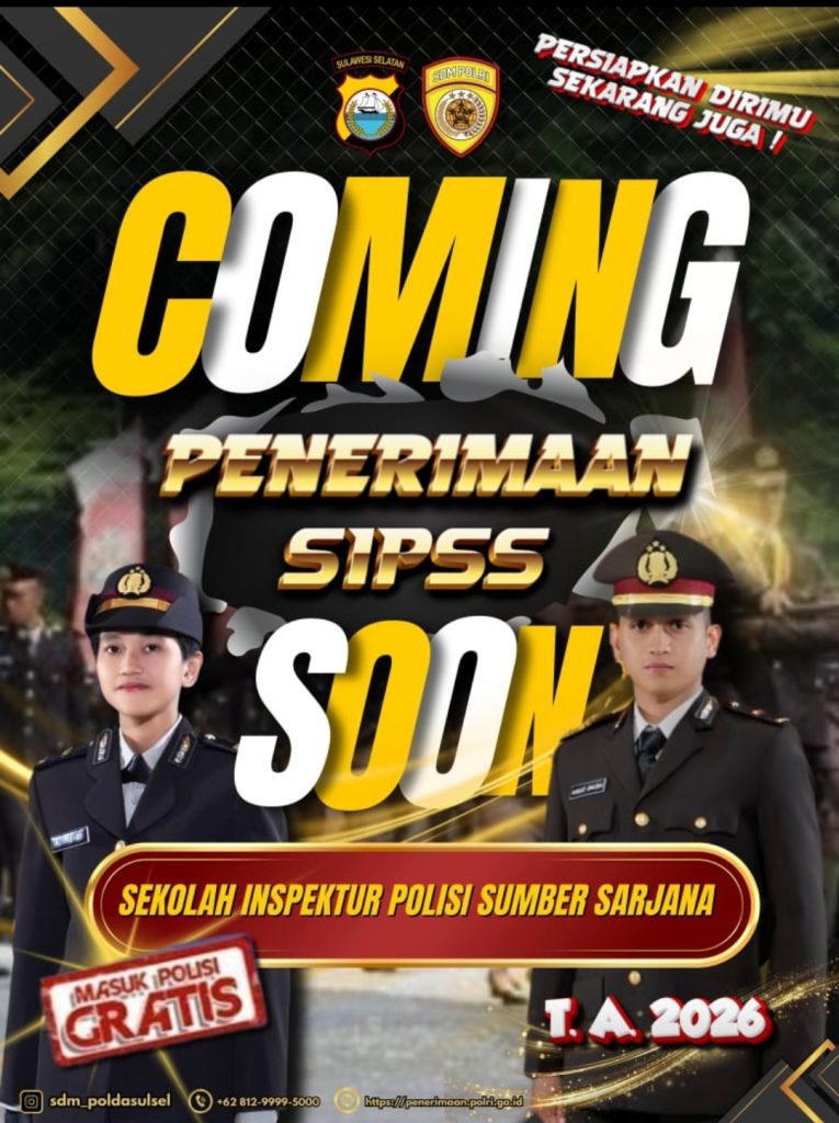 Sinjai – Kepolisian Resor Sinjai melaksanakan kegiatan sosialisasi penerimaan Sekolah Inspektur Polisi Sumber Sarjana (SIPSS) Tahun Anggaran 2026. Kegiatan sosialisasi melalui berbagai media sosial resmi Polres Sinjai.