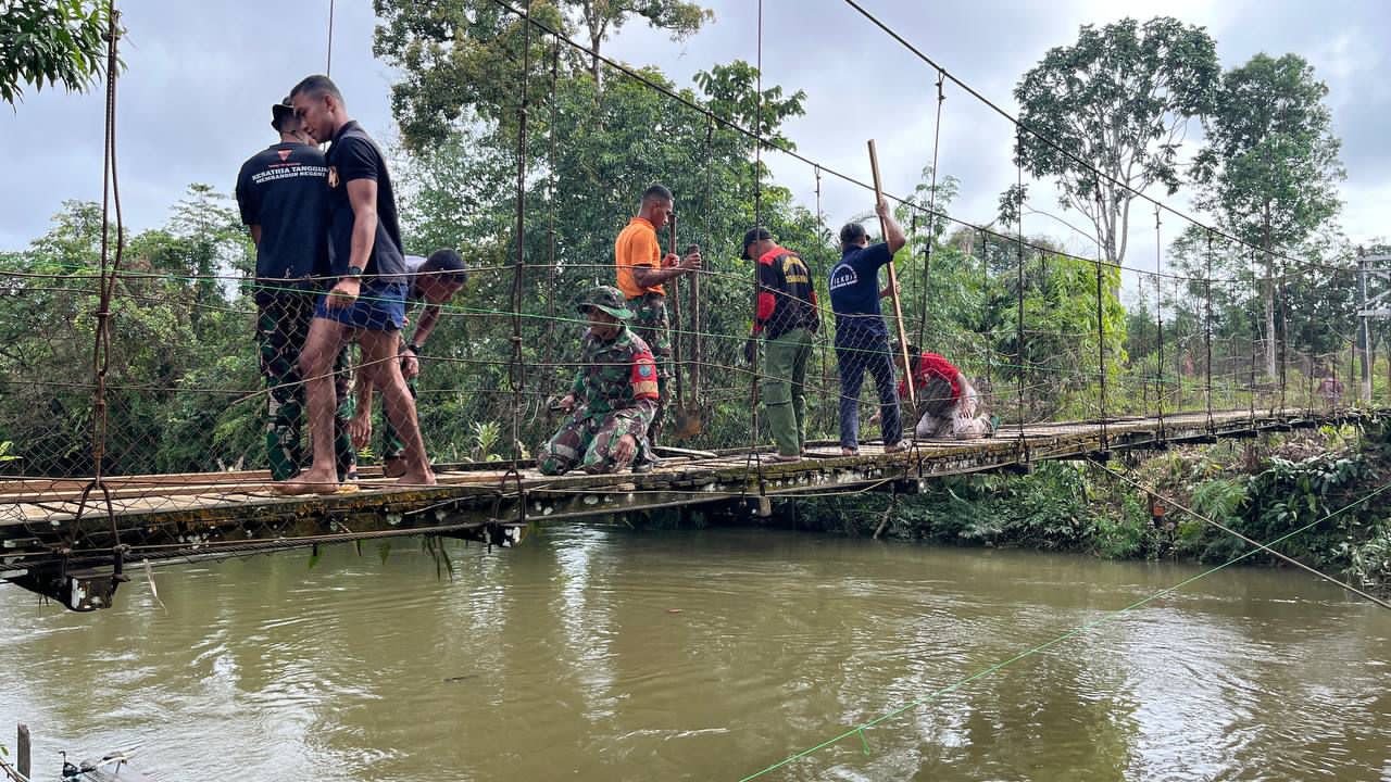 Pembangunan melibatkan personel koramil 1204-18/nanga mahap ,zidam dan Warga masyarakat setempat. Pekerjaan meliputi pembersihan akses dan badan jembatan yang rusak dengan material baru.