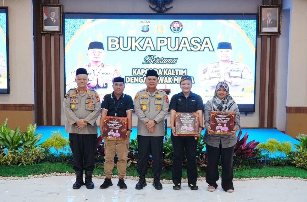 Balikpapan – Usai menggelar kegiatan berbagi takjil, Kepolisian Daerah Kalimantan Timur melanjutkan kegiatan yakni Buka Puasa Bersama dengan insan media di Gedung Mahakam Polda Kaltim, Selasa (10/03/26). Kegiatan ini menjadi momentum untuk mempererat silaturahmi sekaligus memperkuat sinergitas antara Polri dan para jurnalis sebagai mitra dalam penyampaian informasi kepada masyarakat.
