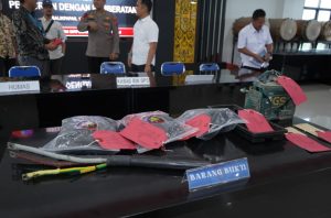 Dari tangan para tersangka, petugas turut mengamankan sejumlah barang bukti, di antaranya satu unit kapal kelotok bermesin Dongfeng 24 PK, satu buah aki merek GS, penutup toolbox, pakaian yang digunakan saat beraksi, serta sejumlah barang lainnya termasuk uang tunai.