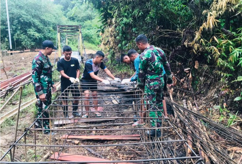 Bengkayang – Kodim 1209/Bky terus menunjukkan komitmennya dalam mendukung kesejahteraan masyarakat melalui pembangunan infrastruktur. Langkah ini merupakan bentuk bakti TNI dalam mengatasi kesulitan rakyat, khususnya di daerah yang sulit terjangkau. Saat ini, personel Kodim sedang menggenjot pelaksanaan pembangunan Jembatan Gantung Perintis Garuda Tahap III yang berlokasi di Ds. Cempaka Putih Kec. Suti Semarang Kab. Bengkayang.