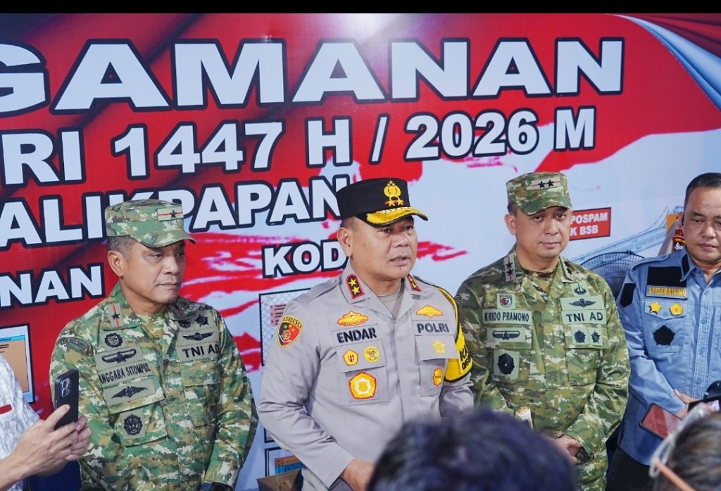 Balikpapan – Kapolda Kalimantan Timur Irjen Pol Endar Priantoro, S.H., S.I.K., C.F.E., M.H., didampingi Pangdam VI/Mulawarman, Wakapolda Kaltim, para Pejabat Utama Polda Kaltim serta unsur Forkopimda Turut hadir dalam kegiatan tersebut serta sebagai bentuk sinergitas lintas sektor dalam menjaga keamanan wilayah melaksanakan patroli peninjauan pos pelayanan dan pos pengamanan dalam rangka malam takbiran Hari Raya Idulfitri 1447 Hijriah, Jumat malam (20/03/26).