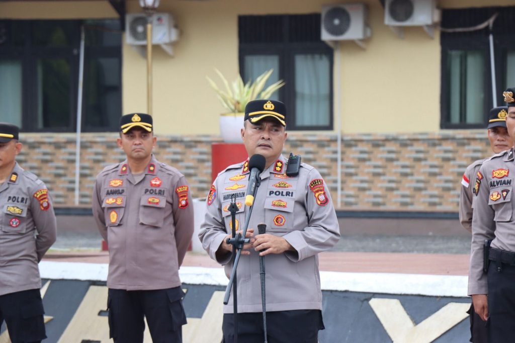 Polres Melawi Polda Kalbar- Penekanan mendukung Asta Cita Program Pemerintah Ketahanan Pangan Swasembada Jagung di sampaikan Kapolres Melawi Polda Kalbar AKBP Harris Batara Simbolon, S.I.K., S.H., M.Tr.Opsla di hadapan Waka Polres Melawi Kompol Aang Permana, S.I.P., S.H., M.A.P, Pejabat Utama di lingkungan Polres Melawi dan seluruh personel saat apel pagi jam pimpinan di halaman apel bhayangkara, Senin (30/3/26)
