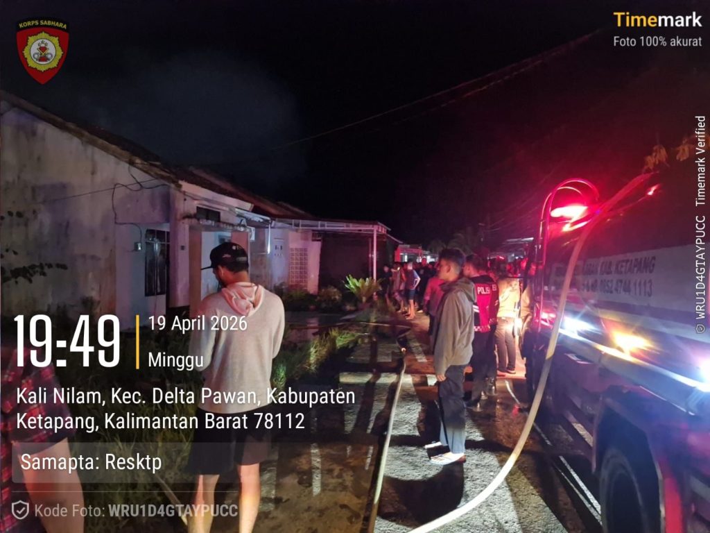 KETAPANG, Polda Kalbar – Polres Ketapang melalui personel Samapta bersama piket fungsi bergerak cepat mendatangi Tempat Kejadian Perkara (TKP) kebakaran 1 unit rumah di BTN Palm Vista 1 Blok C.29, Jalan Gajah Mada, Desa Kalinilam, Kecamatan Delta Pawan, Kabupaten Ketapang, pada (19/04/2026).