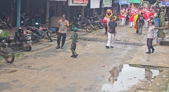 Pengamanan dilakukan di sepanjang rute pawai guna mengantisipasi potensi gangguan kamtibmas serta memastikan arus lalu lintas tetap tertib dan lancar. Personel gabungan terlihat aktif melakukan pengaturan lalu lintas, pengawalan peserta, serta memberikan imbauan kepada masyarakat pengguna jalan.