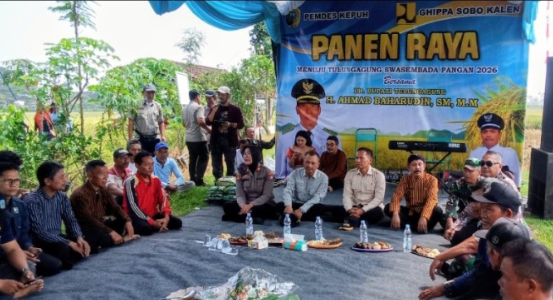 Tulungagung,-Kegiatan panen raya di Desa Kepuh, Kecamatan Boyolangu, Kamis (23/4/2026), menjadi momentum penting bagi Pemerintah Kabupaten Tulungagung dalam menegaskan komitmen terhadap penguatan sektor pertanian dan ketahanan pangan daerah.