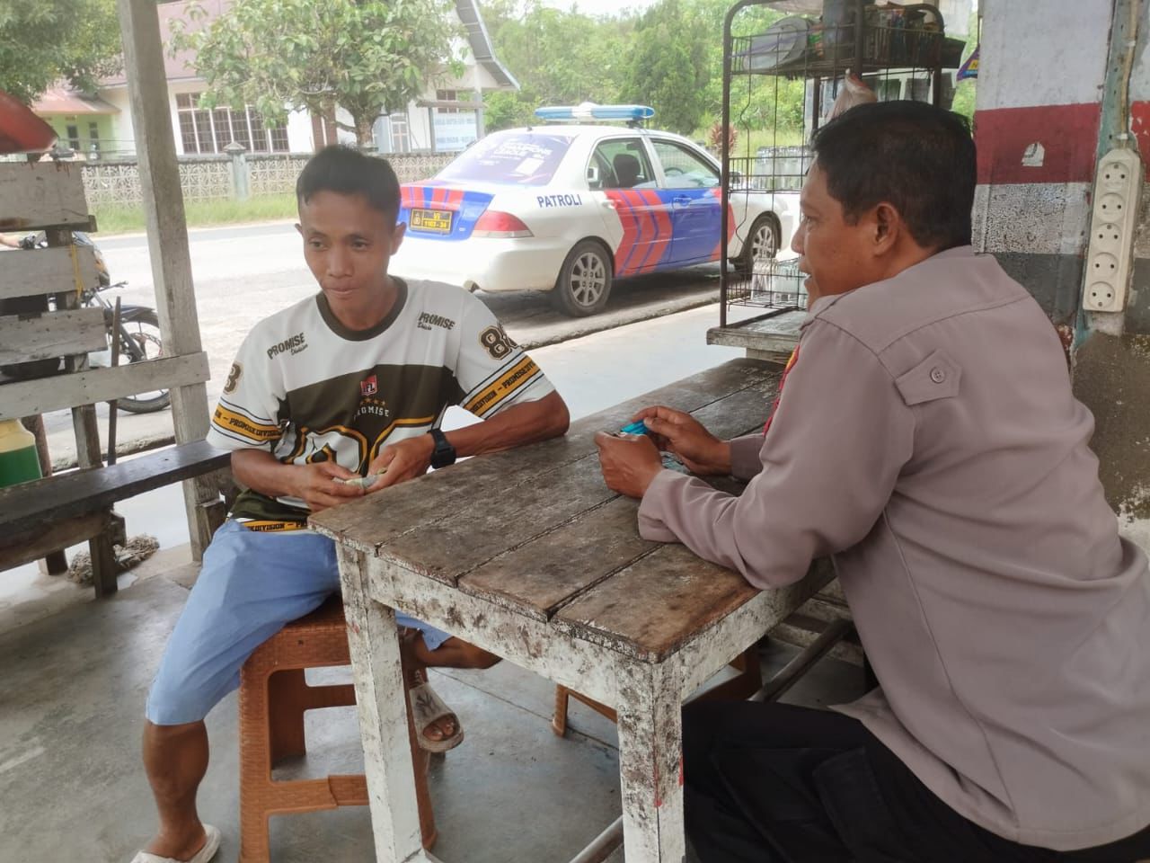 Seorang anggota polisi, tanpa sekat dan tanpa jarak, memilih duduk sejajar dengan warga. Bukan dalam suasana formal yang kaku, melainkan dalam nuansa santai yang penuh makna. Dengan bahasa yang sederhana dan senyum yang tulus, pesan-pesan kamtibmas disampaikan, menyatu di antara obrolan ringan yang terasa begitu akrab.